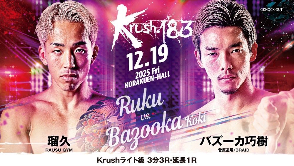 お知らせ【KNOCK OUT】唯一の黒星を付けられた久井大夢に挑む龍聖「今回は初めて、自分の自己満で人を笑顔にできると思う」“KING OF KNOCK OUT”襲名へ