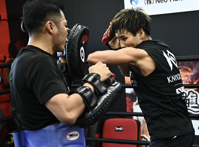 公開練習では得意のパンチに加えてキレ味の良いヒジ打ちを見せており、そのヒジは試合でも見られるのか。「相手は絶対パンチを警戒して腕を掴んでくるとは思うので、それに合わせてヒジを打てれば」と相手が得意とするヒジでの反撃も狙っていると明かす。